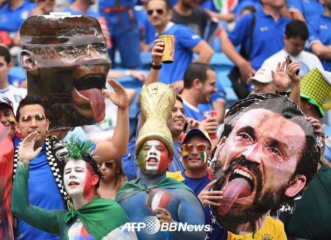 [OSEN=사진팀] 25일(한국시간) 브라질 나타우의 에스타디오 다스 두 나스에서 열리는 '2014 브라질 월드컵' D조 3차전 이탈리아와 우루과이의 경기에 이탈리아 팬들이 응원을 하고 있다.