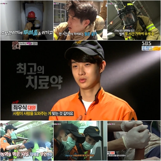 최우식은 지난 24일 오후 방송된 SBS 예능프로그램 '심장이 뛴다'에서 조동혁과 함께 경기도 고양시 종합터미널 화재사고에 투입됐다. 무려 118명의 사상자가 발생한 초대형 사고로 당시 130여명의 소방관과 40여대의 소방차가 출동했다. 그 속에 최우식이 포함돼 있었다.