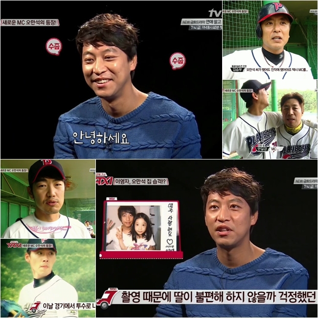 오만석은 24일 밤 12시20분 방송된 tvN '현장토크쇼 택시(이하 택시)'에 “안녕하세요. 스포츠를 정말 좋아하고 연기보다는 잿밥에 더 관심 많은 오만석입니다”라는 수줍은 인사말로 첫 등장했다.
