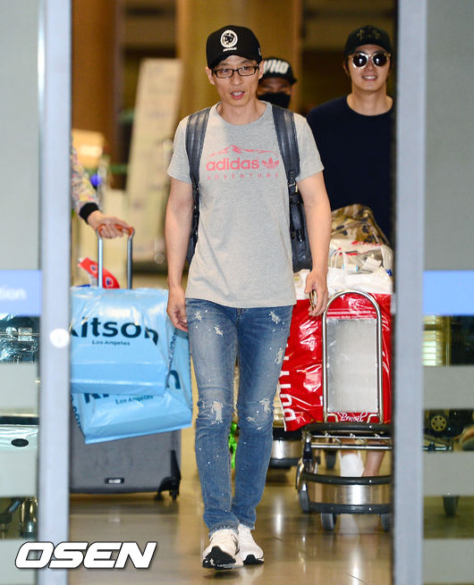 무한도전 유재석이 입국장을 빠져나오고 있다.