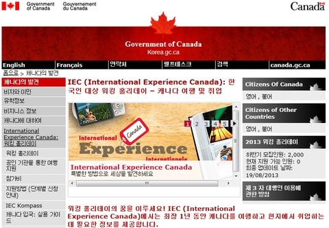 캐나다 워킹홀리데이 신청시작..캐나다 대사관 홈페이지 폭주