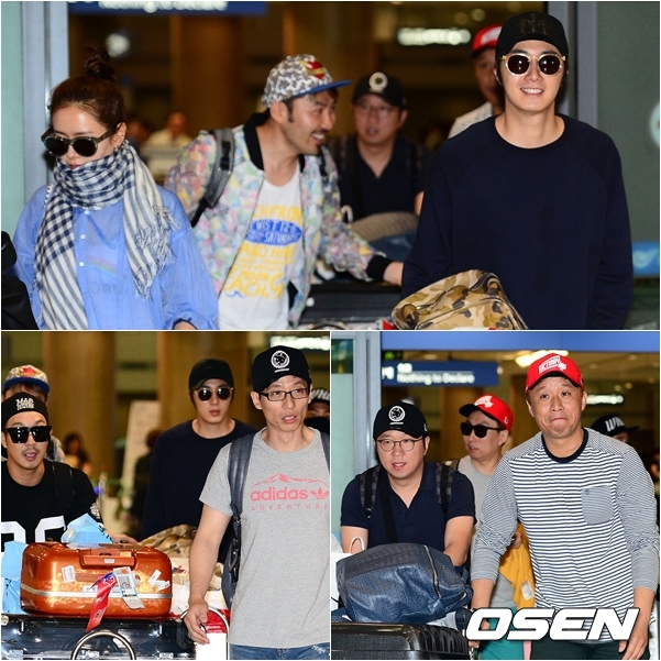 ‘무한도전’ 응원단인 유재석, 박명수, 정준하, 정형돈, 노홍철, 하하와 게스트 정일우, 손예진, B1A4 바로는 25일 오전 4시 40분 비행기로 인천 공항에 도착했다.
