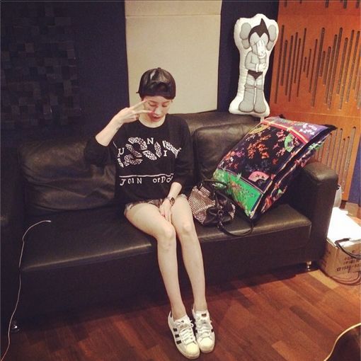 사진 속 서인영은 스냅백을 쓰고 손으로 브이 포즈를 한 채 소파 위에 앉아있다. 또한 짧은 핫팬츠를 입어 하의실종 패션을 완성했다. 특히 운동화를 신었음에도 하이힐을 신은 것처럼 '굴욕 없는' 다리가 눈에 띈다. 서인영은 다음 앨범의 녹음을 위해 녹음실에 온 것으로 보인다.