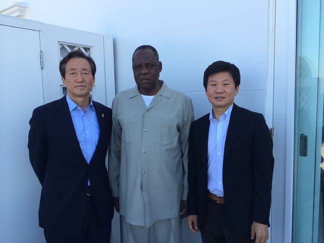 정몽준 국제축구연맹(FIFA) 명예 부회장 겸 대한축구협회 명예회장이 24일 오전(현지시간) 브라질 리우 데 자네이루에서 이사 하야투 FIFA 부회장 겸 아프리카 축구연맹 회장을 만났다.