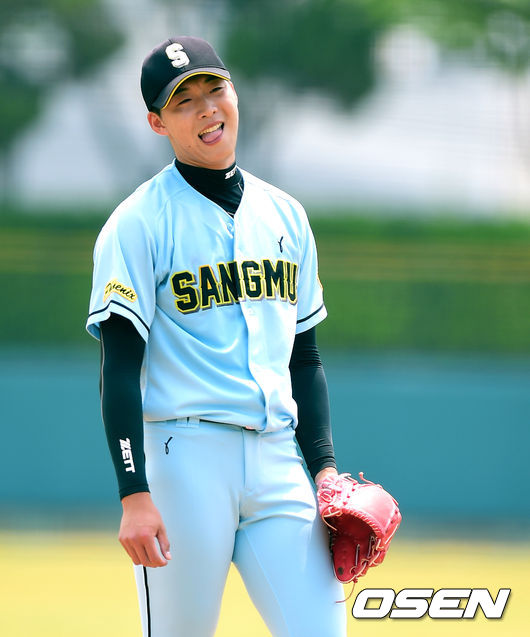 상무 선발투수 정인욱이 볼 판정에 아쉬워하고 있다.