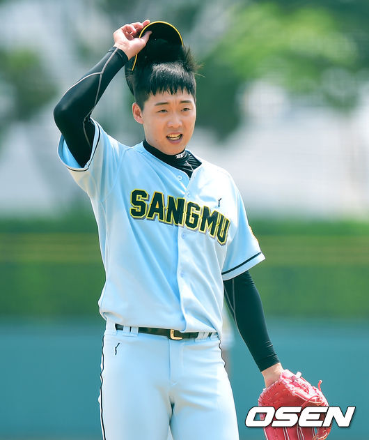 상무 선발투수 정인욱이 볼 판정에 아쉬워하고 있다.