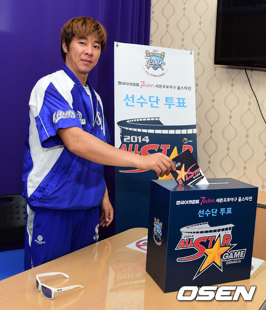 경기에 앞서 삼성 임창용이 올스타전 선수단 투표를 하고 있다.