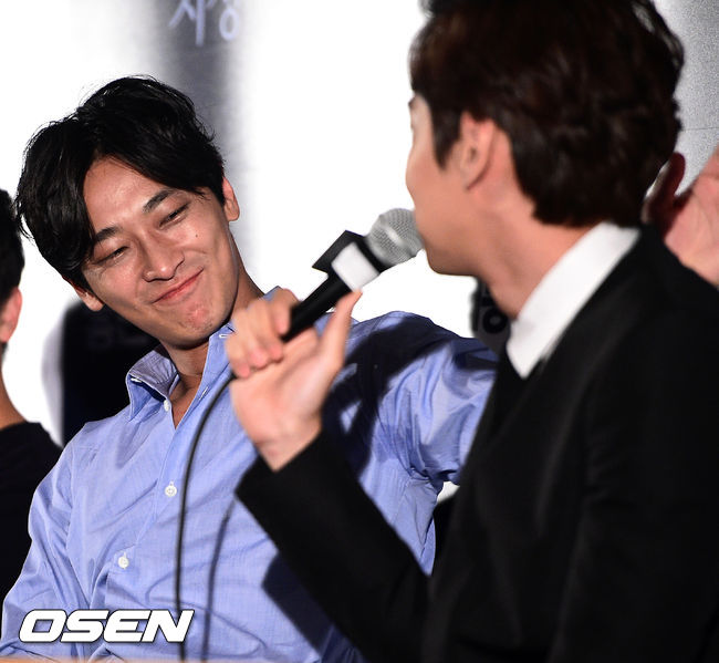 25일 오후 서울 왕십리 CGV에서 진행된 영화 '좋은 친구들' 언론시사회(감독 이도윤)에서 배우 이광수의 답변에 주지훈이 이광수를 격려하고 있다