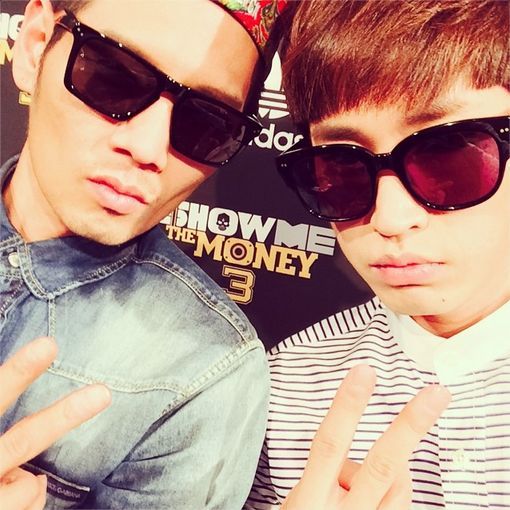 사진 속 타블로와 마스타 우는 똑같이 선글라스를 끼고 브이 포즈를 하며 카메라를 응시하고 있다. 이들의 뒤로 보이는 포토월은 Mnet ‘쇼미더머니3’의 제작발표회장에서 찍은 사진임을 짐작케 한다.
