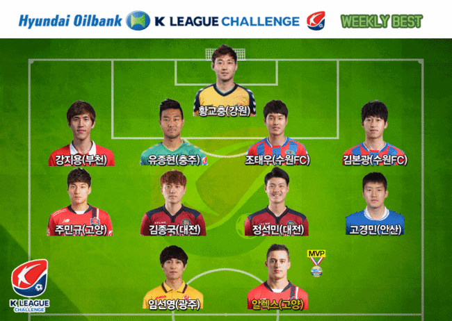 지난 6월 21일 열린 대전 시티즌과 대구FC의 경기에서 짜릿한 역전승을 선사한 첫 골과 결승골을 성공시킨 정석민과 김종국이 현대오일뱅크 K리그 챌린지 15라운드 위클리 베스트11에 선정되었다.