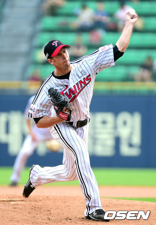 25일 오후 서울 잠실구장에서 열린 '2014 한국야쿠르트 세븐 프로야구' LG 트윈스와 NC 다이노스의 경기 LG 선발 티포드가 역투하고 있다.