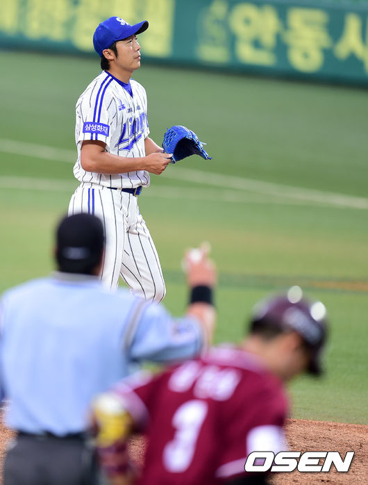 2회초 무사 1루에서 삼성 배영수가 넥센 김민성에 투런포를 허용하고 아쉬워하고 있다.