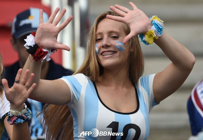 아르헨티나 미녀팬이 응원을 하고 있다.