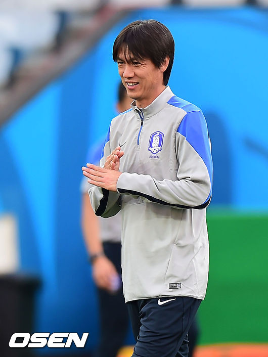 26일 오전(이하 한국시간) 홍명보 감독이 이끄는 축구국가대표팀이 브라질 상파울루의 아레나 데 상파울루 경기장에서 벨기에와의 조별리그 H조 3차전을 하루 앞두고 훈련을 가졌다. 홍명보 감독이 환하게 웃고 있다.