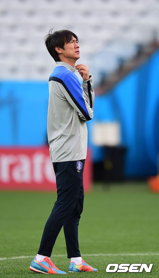 26일 오전(이하 한국시간) 홍명보 감독이 이끄는 축구국가대표팀이 브라질 상파울루의 아레나 데 상파울루 경기장에서 벨기에와의 조별리그 H조 3차전을 하루 앞두고 훈련을 가졌다. 홍명보 감독이 생각에 잠겨있다.