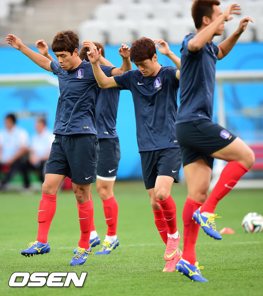 26일 오전(이하 한국시간) 홍명보 감독이 이끄는 축구국가대표팀이 브라질 상파울루의 아레나 데 상파울루 경기장에서 벨기에와의 조별리그 H조 3차전을 하루 앞두고 훈련을 가졌다.