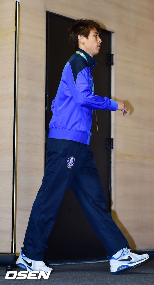 26일 오전(이하 한국시간) 홍명보 감독이 이끄는 축구국가대표팀이 브라질 상파울루의 아레나 데 상파울루 경기장에서 벨기에와의 조별리그 H조 3차전을 하루 앞두고 훈련을 가졌다. 훈련 후 기자회견에서 구자철이 입장하고 있다.