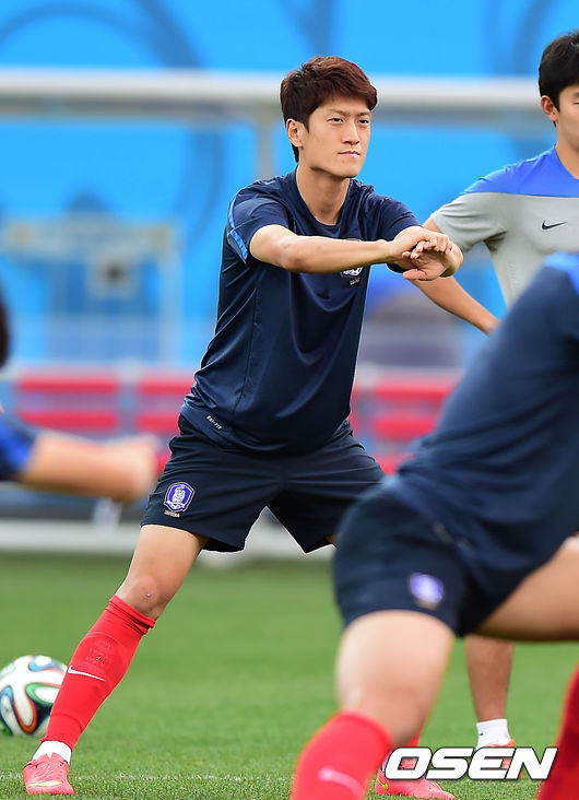26일 오전(이하 한국시간) 홍명보 감독이 이끄는 축구국가대표팀이 브라질 상파울루의 아레나 데 상파울루 경기장에서 벨기에와의 조별리그 H조 3차전을 하루 앞두고 훈련을 가졌다. 이청용이 그라운드 위에서 몸을 풀고 있다.