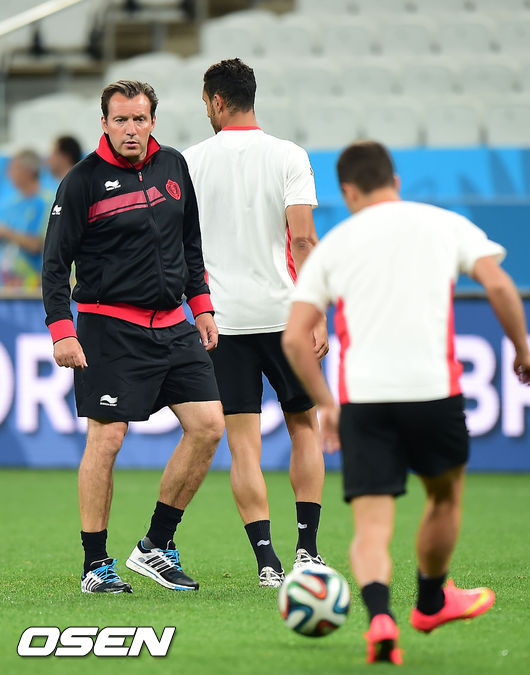26일 오전(이하 한국시간) 홍명보 감독이 이끄는 축구국가대표팀이 브라질 상파울루의 아레나 데 상파울루 경기장에서 벨기에와의 조별리그 H조 3차전을 하루 앞두고 훈련을 가졌다. 대한민국 대표팀에 이어 벨기에 대표팀이 훈련을 하고 있다.