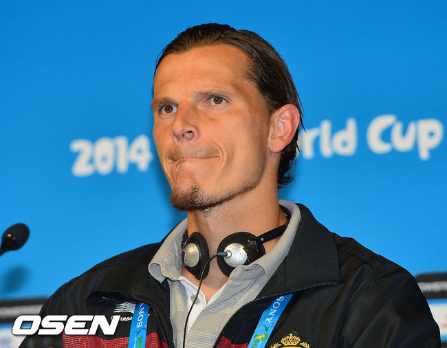 26일 오전(이하 한국시간) 홍명보 감독이 이끄는 축구국가대표팀이 브라질 상파울루의 아레나 데 상파울루 경기장에서 벨기에와의 조별리그 H조 3차전을 하루 앞두고 훈련을 가졌다. 대한민국 대표팀에 이어 벨기에 대표팀이 훈련을 한 후 기자회견을 갖고 있다.