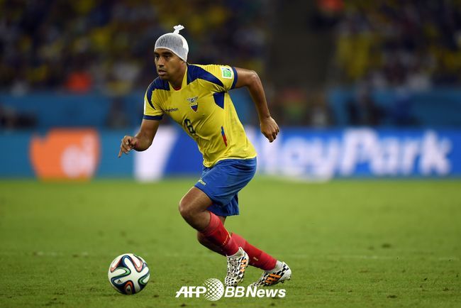 에콰도르 미드필더 크리스티안 노보아는 수비하는 과정에서 머리에 큰 출혈이 있는 가운데 붕대로 감싸고 뛰는 ‘붕대투혼’을 발휘했다./photo@osen.co.kr