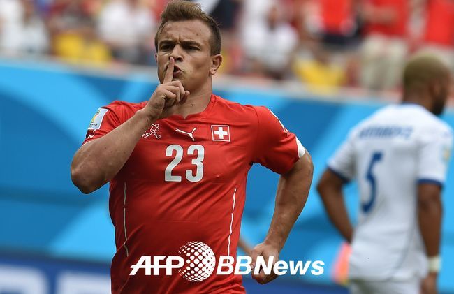 스위스 샤키리가 골을 넣고 기뻐하고 있다./photo@osen.co.kr