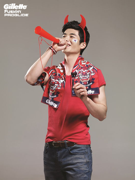 최근 대한민국 경기에서 중원을 책임지고 있는 '중원사령관' 기성용이 축구 팬들을 향한 마음을 표현하기 위해 붉은 악마로 변신한 사진이 공개되어 화제다. 사진에서 기성용은 대한민국의 승리를 위해 출시된 ‘질레트 대한민국 한정판’을 들고 열정적으로 응원하는 모습을 선보이며 대한민국의 마지막 경기까지 힘찬 응원을 당부하는 메시지를 전했다.