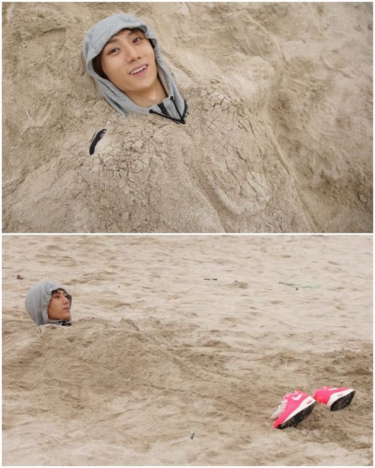 [OSEN=양지선 인턴기자] 그룹 비스트 멤버 장현승의 모래사장 굴욕 인증샷이 공개됐다.