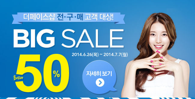 화장품브랜드 더페이스샵은 오늘(26일)부터 오는 7월7일까지 12일 동안 빅세일 이벤트를 진행한다.