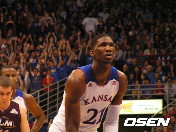 지난해 11월 캔자스대 홈경기를 취재했다. 앤드류 위긴스(20)를 보러갔었다. 그 때만 해도 엠비드는 언론에게 관심 받는 대상이 전혀 아니었다. 11월 8일 루이지애나 먼로전에서 위긴스는 16점을 넣으며 데뷔전부터 폭발적인 관심을 받았다. 이 때 캔자스의 주전센터는 올해 KBL 트라이아웃에 신청서를 넣은 타릭 블랙이었다. 블랙은 7점, 7리바운드로 페리 엘리스(12점, 8리바운드)와 함께 든든하게 골밑을 지켰다.