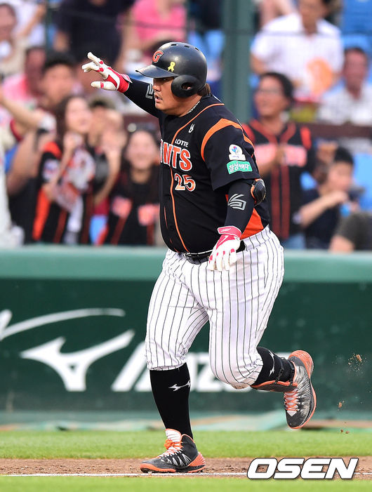 3회초 2사 1루에서 롯데 최준석이 역전 투런포를 날리고 그라운드를 돌고 있다.