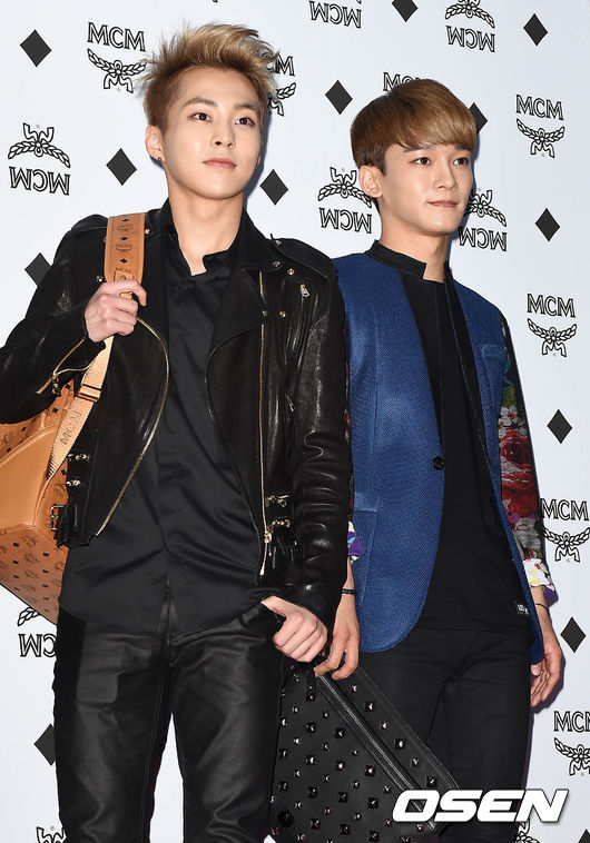 그룹 EXO 시우민, 첸이 포토타임을 갖고 있다.