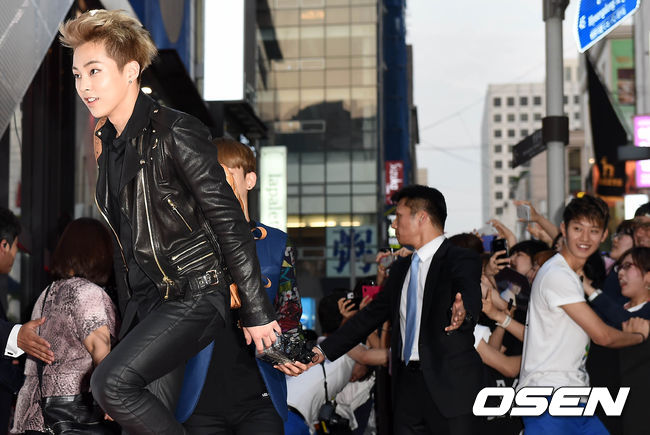 그룹 EXO 시우민이 포토월로 이동하고 있다.