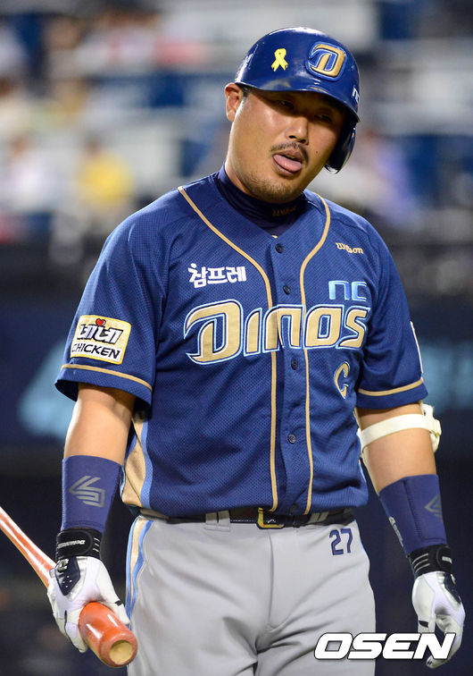 26일 오후 서울 잠실구장에서 열린 2014 한국야쿠르트 세븐 프로야구 LG 트윈스와 NC 다이노스의 경기, 7회초 무사 1루 이호준이 삼진을 당하고 아쉬워하고 있다.