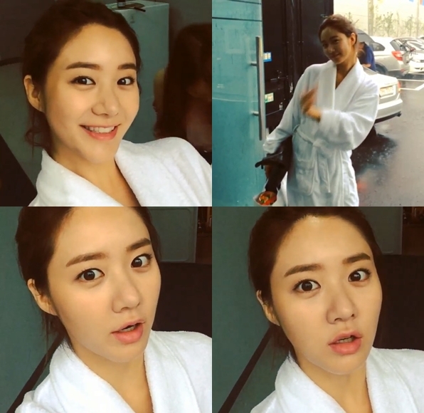 한그루는 지난 23일 자신의 인스타그램에 "세트장에서 목욕신 찍은 후 나는 비를 구경하고 있지요. 후훗. 비 많이 온다“라는 글과 함께 짧은 영상을 게재했다.