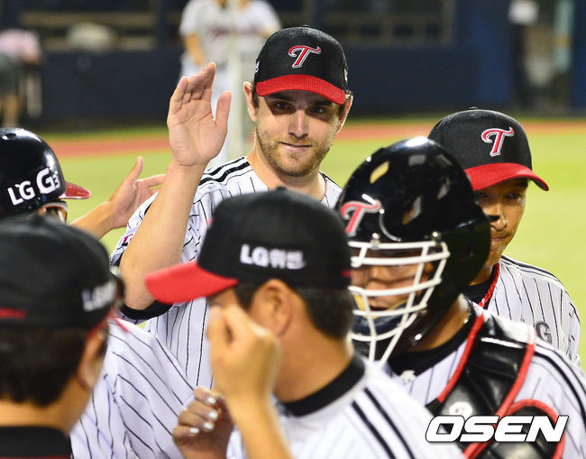 경기종료 후 완봉승을 거둔 LG 리오단이 동료들과 하이파이브를 하고 있다 / soul1014@osen.co.kr