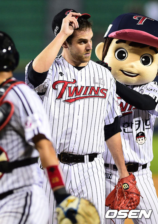 경기종료 후 완봉승을 거둔 LG 리오단이 마스코트의 축하를 받고 있다. / soul1014@osen.co.kr
