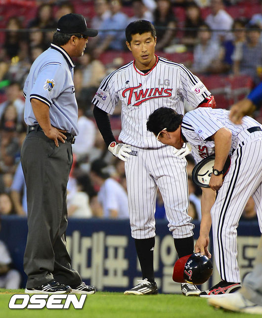 5회 2사 LG 임재철이 1루에 판정에 대해 불만을 표하고 있다. / greenfield@osen.co.kr