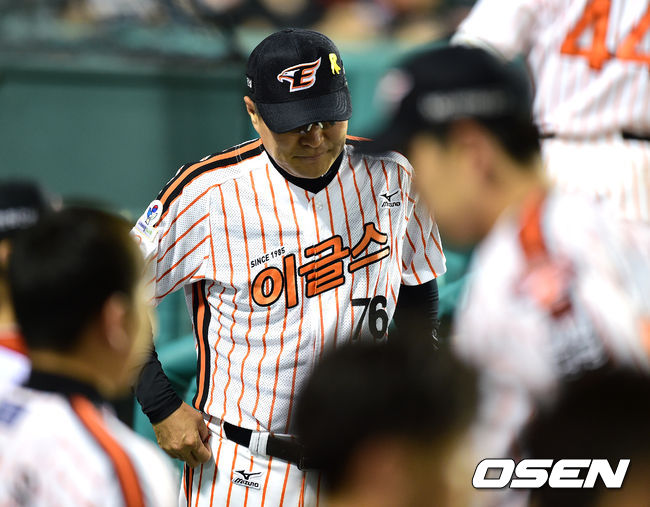 이날 한화는 김종모 1군 타격코치를 수석코치로 승격시켰다. 한화는 지난달 14일 김성한 수석코치가 자진 사퇴한 이후 수석코치 자리가 공석 중이었다. 사진은 김종모 수석코치가 더그아웃에서 생각에 잠긴 모습.