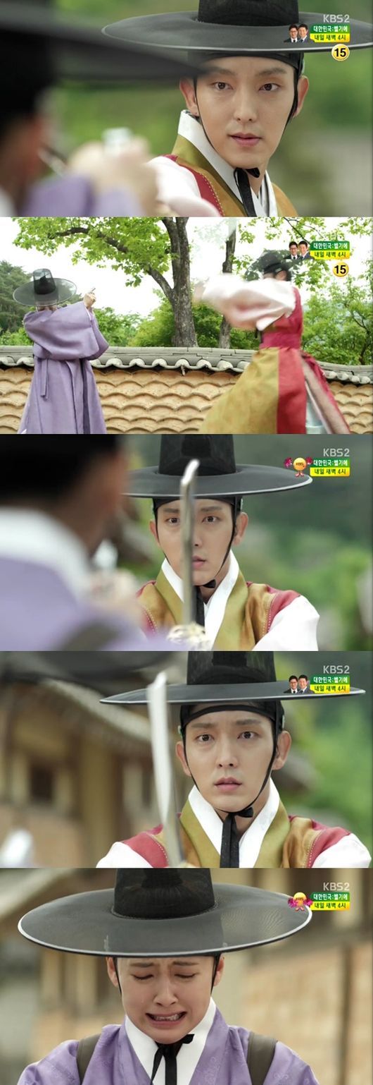 26일 오후 10시 방송된 KBS 2TV 수목드라마 '조선 총잡이'(이정우·한희정 극본, 김정민·차영훈 연출) 2회에는 정수인(남상미 분)이 쏜 총에 놀란 박윤강(이준기 분)의 모습이 전파를 탔다.