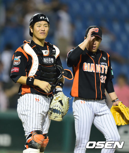 경기후 승리한 롯데 강민호가 미소짓고 있다./ jpnews@osen.co.kr