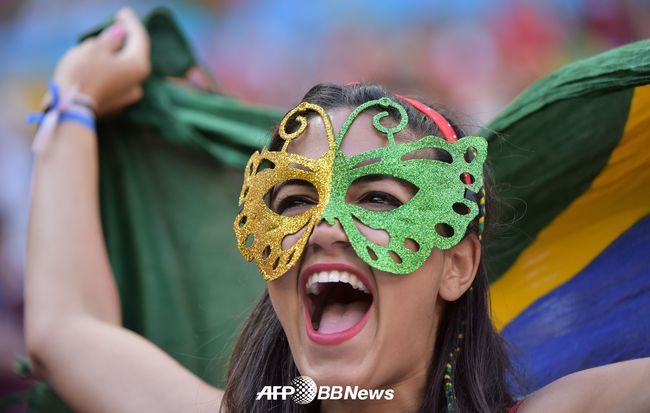 [OSEN=사진팀] 27일 새벽(한국시간) 브라질 에스타디오 나시오날 데 브라질리아서 2014 브라질 월드컵 G조 조별리그 최종전 포르투갈과 가나의 경기,한 축구팬이 열띤 응원을 펼치고 있다