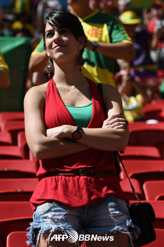 [OSEN=사진팀] 27일 새벽(한국시간) 브라질 에스타디오 나시오날 데 브라질리아서 2014 브라질 월드컵 G조 조별리그 최종전 포르투갈과 가나의 경기,한 축구팬이 열띤 응원을 펼치고 있다