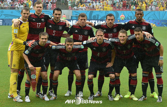 독일은 노이어 골키퍼를 비롯, 오른쪽부터 보아텡, 후멜스, 메르테사커, 회베데스로 포백을 구성했다. 허리에는 람, 슈바인슈타이거, 크로스가 위치하며 공격진에는 외질, 뮐러, 포돌스키가 나선다. 케디라 대신 슈바인슈타이거가, 괴체 대신 포돌스키가 먼저 나서는 것이 눈에 띈다. 월드컵 역대 최다골 기록에 도전하는 클로제는 벤치에서 대기한다.