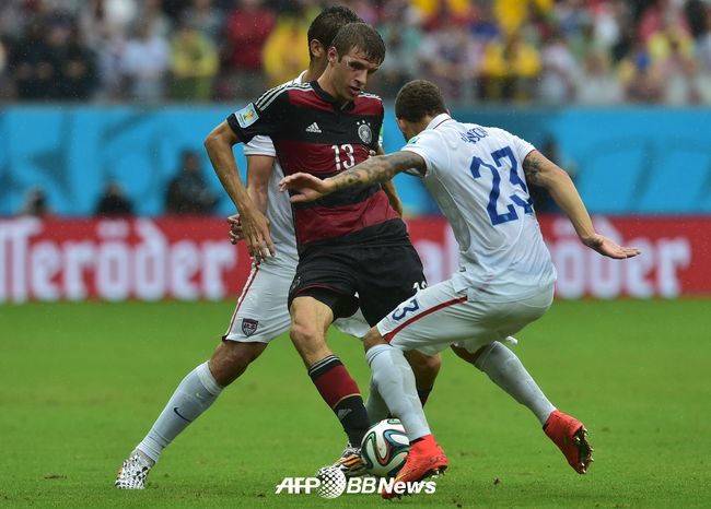 독일은 27일(이하 한국시간) 헤시페의 아레나 페르남부쿠에서 열린 미국과의 ‘2014 브라질 월드컵’ 조별리그 G조 마지막 경기에서 후반 10분 터진 뮐러의 골에 힘입어 1-0으로 이겼다. 조별리그 2승1무를 기록한 독일은 조 1위로 16강에 올라 H조 2위와 격돌한다. 한편 이날 진 미국(1승1무1패)도 조 2위를 확보해 16강 진출에 성공했다.