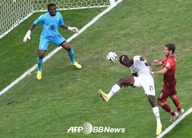 [OSEN=사진팀] 27일 새벽(한국시간) 브라질 에스타디오 나시오날 데 브라질리아서 2014 브라질 월드컵 G조 조별리그 최종전 포르투갈과 가나의 경기, 전반 가나 보예가 자책골을 넣고 있다