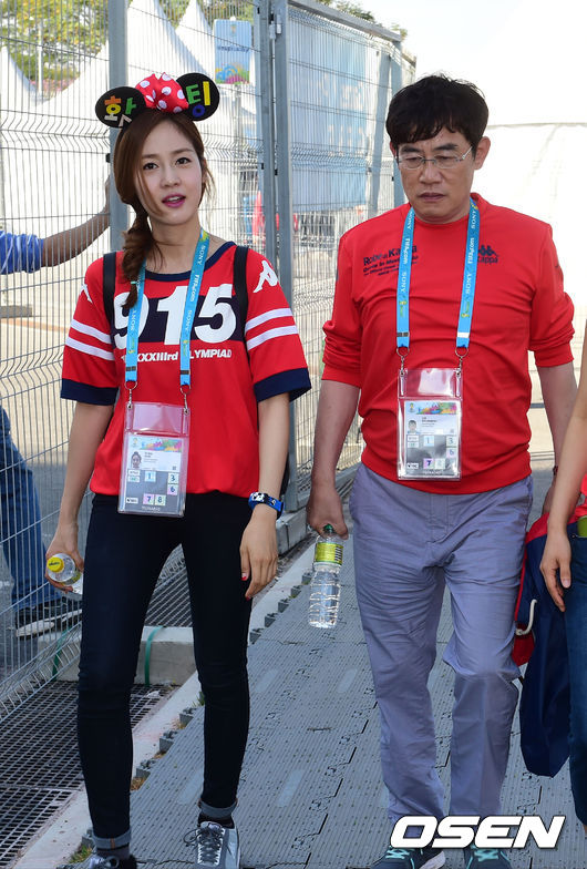 경기전 성유리와 이경규가 응원을 위해 경기장에 들어서고 있다.