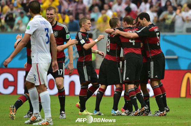 독일은 27일(이하 한국시간) 헤시페의 아레나 페르남부쿠에서 열린 미국과의 ‘2014 브라질 월드컵’ 조별리그 G조 마지막 경기에서 후반 10분 터진 뮐러의 골에 힘입어 1-0으로 이겼다. 조별리그 2승1무를 기록한 독일은 조 1위로 16강에 올라 H조 2위와 격돌한다. 한편 이날 진 미국(1승1무1패)도 조 2위를 확보해 16강 진출에 성공했다.