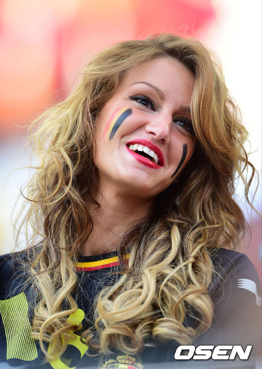 벨기에 축구팬이 열띤 응원을 펼치며 경기 시작을 기다리고 있다.