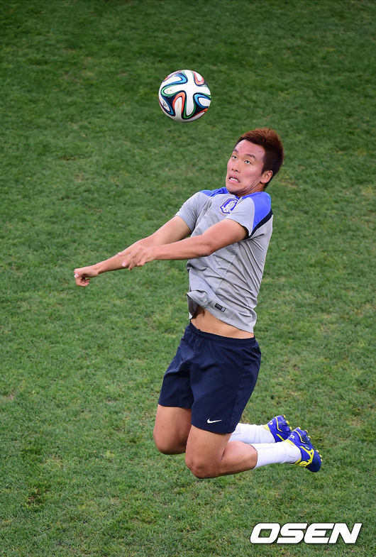경기에 앞서 선발라인업에 포함된 김신욱이 몸을 풀고 있다